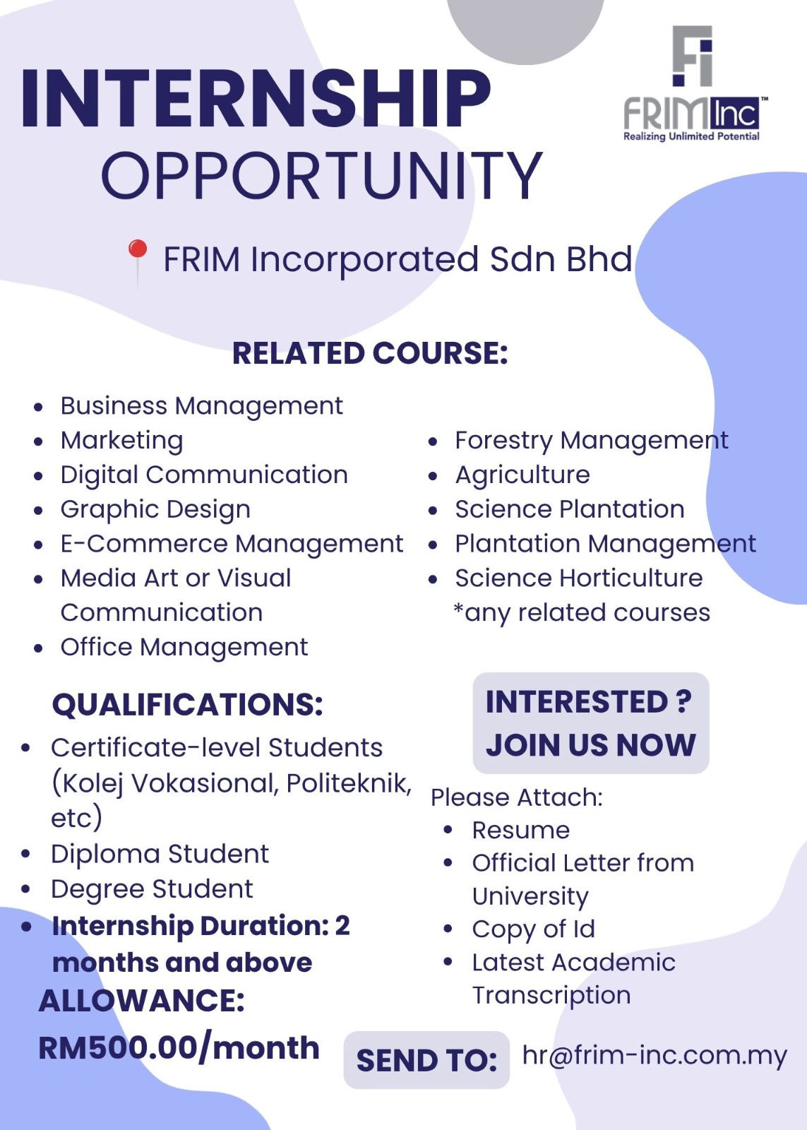 INDUSTRIAL TRAINING AVAILABLE / LATIHAN INDUSTRI TERSEDIA